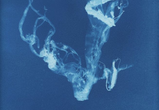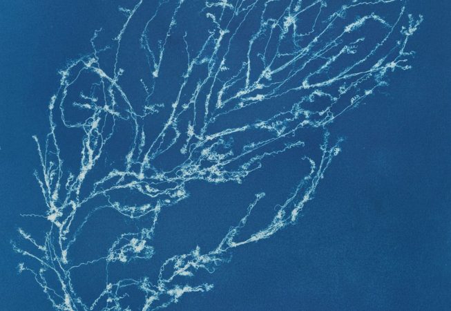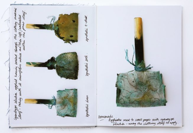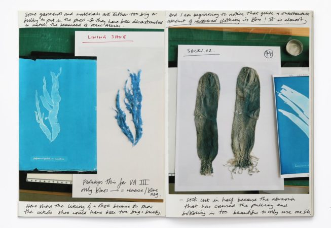 Photographs of British Algae: Cyanotype Imperfections est une typologie de fragments de vêtements abandonnés découverts sur les côtes du Royaume-Uni. Hommage au travail de la botaniste et photo-graphe pionnière Anna Atkins, les images uniques du livre imitent différentes espèces d’al-gues marines trouvées dans les eaux de Grande-Bretagne. En créant cette œuvre, l’artiste photographe Mandy Barker espère sensibiliser le public à la fast fashion, aux vêtements synthétiques et à l’impact néfaste des microfibres sur les océans.