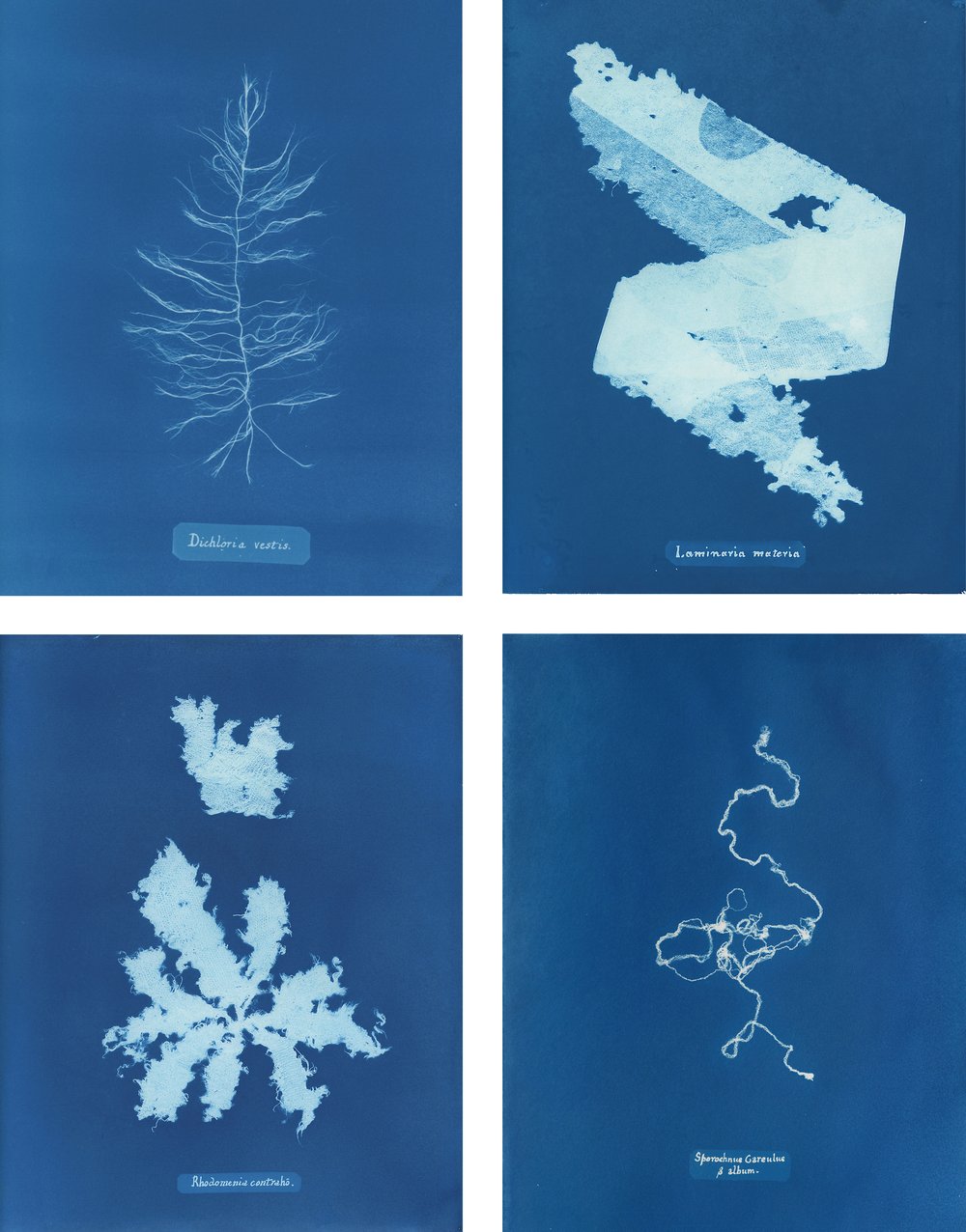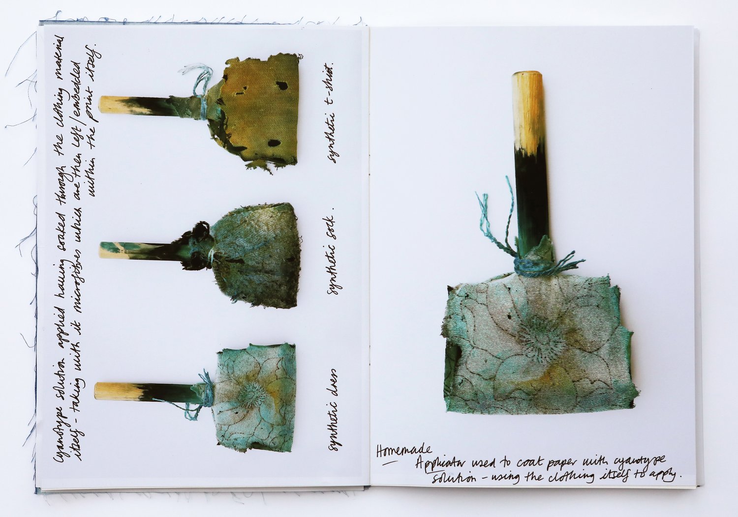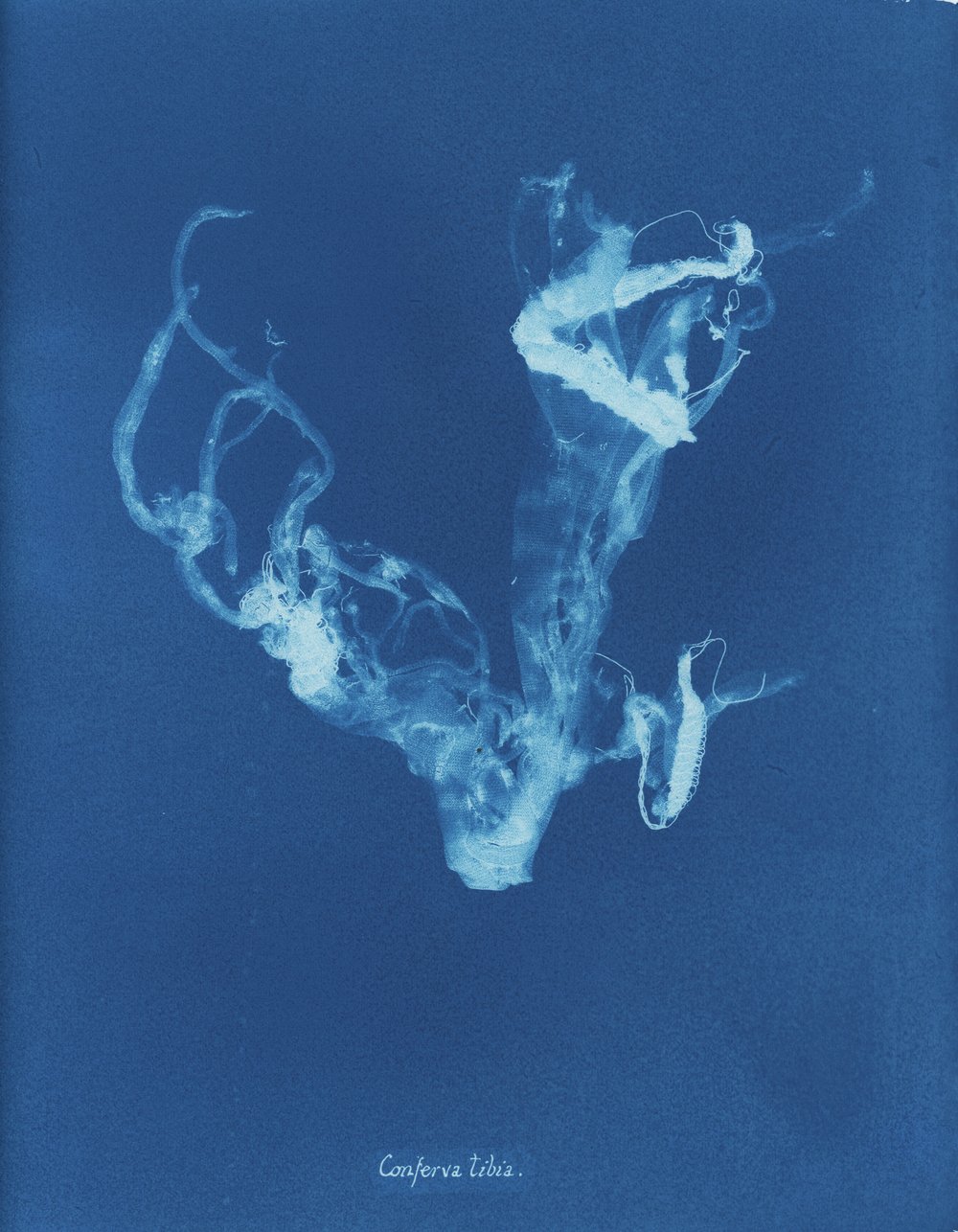 Photographs of British Algae: Cyanotype Imperfections est une typologie de fragments de vêtements abandonnés découverts sur les côtes du Royaume-Uni. Hommage au travail de la botaniste et photo-graphe pionnière Anna Atkins, les images uniques du livre imitent différentes espèces d’al-gues marines trouvées dans les eaux de Grande-Bretagne. En créant cette œuvre, l’artiste photographe Mandy Barker espère sensibiliser le public à la fast fashion, aux vêtements synthétiques et à l’impact néfaste des microfibres sur les océans.