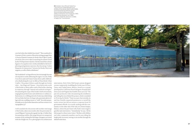 La frontière entre les États-Unis et le Mexique a connu des changements spectaculaires au cours des six dernières décennies, devenant de plus en plus industrialisée, urbanisée et militarisée, en particulier après le 11 septembre et la guerre contre le terrorisme. Les informations diffusées par les médias grand public et conservateurs ont souvent renforcé ou exacerbé ces évolutions, en présentant la frontière comme incontrôlable et en décrivant les migrants en termes péjoratifs, alimentant ainsi le sentiment xénophobe.