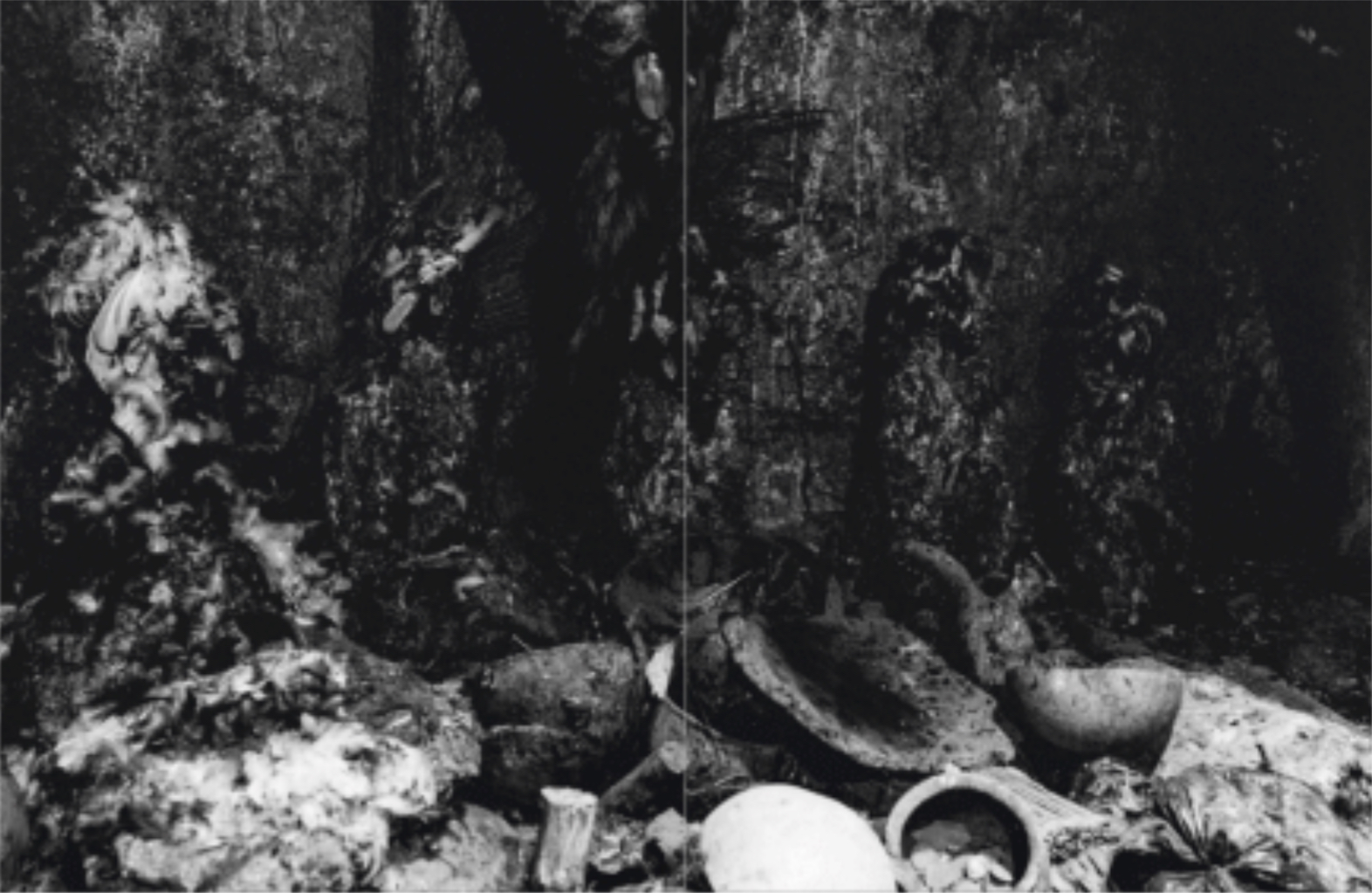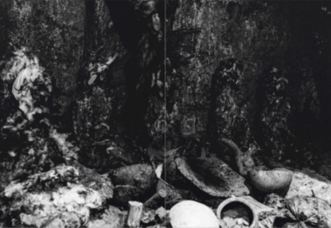 La sorcellerie reste insaisissable, surnaturelle, invérifiable. Pourtant, les conséquences d’une accusation sont, elles, bien réelles : les inégalités et discriminations subies par les accusées (car ces accusations touchent très majoritairement des femmes) sont légion. Adulte, avec Quatre Yeux, Adrien Bitibaly a arpenté le pays pour rencontrer des prêtres traditionnels, individus dotés de la « capacité » de déterminer si une personne possède des pouvoirs maléfiques et doit être ainsi désignée comme sorcière. Quel est leur rôle dans cette pratique sociale ? Possesseurs d’un pouvoir dont les conditions d’exercice restent inconnues pour la majorité, peuvent-ils pour autant se tromper ? Son travail photographique cherche à montrer ce qui peut déclencher les accusations de sorcellerie. Il s’agit pour lui d’explorer la genèse d’une croyance populaire, et non de chercher à prouver une vérité.