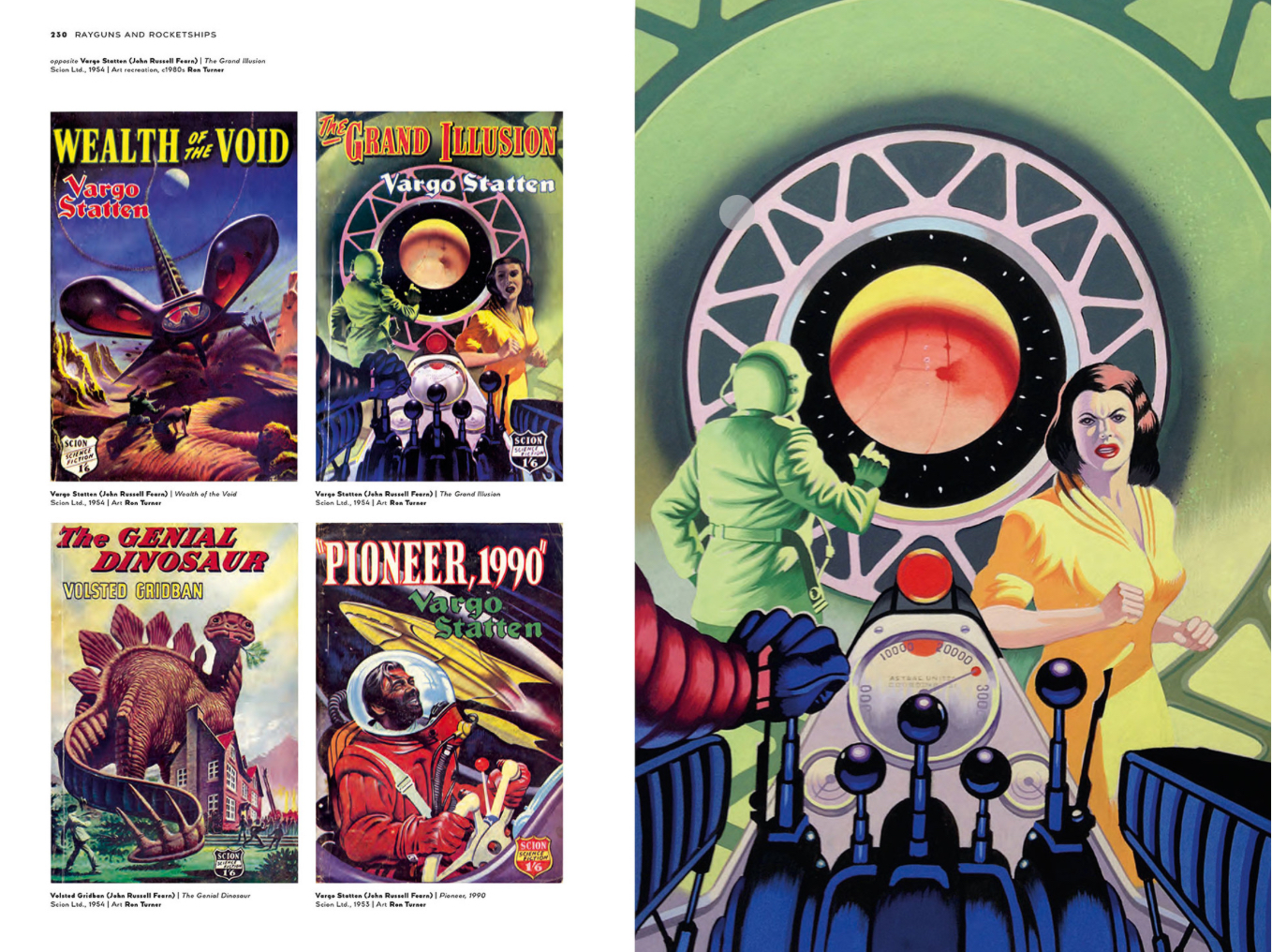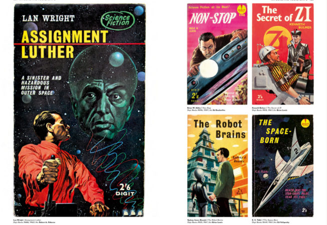 Malgré les délais contraignants et les salaires médiocres, les artistes de la couverture des livres ont réussi à produire des œuvres d’art d’un éclat multicolore et hallucinant et ont rassemblé ici certains des meilleurs de leur production au cours d’une période sans précédent d’optimisme et d’opportunisme impétueux dans l’édition de livres. Méfiez-vous du démon de l’espace!