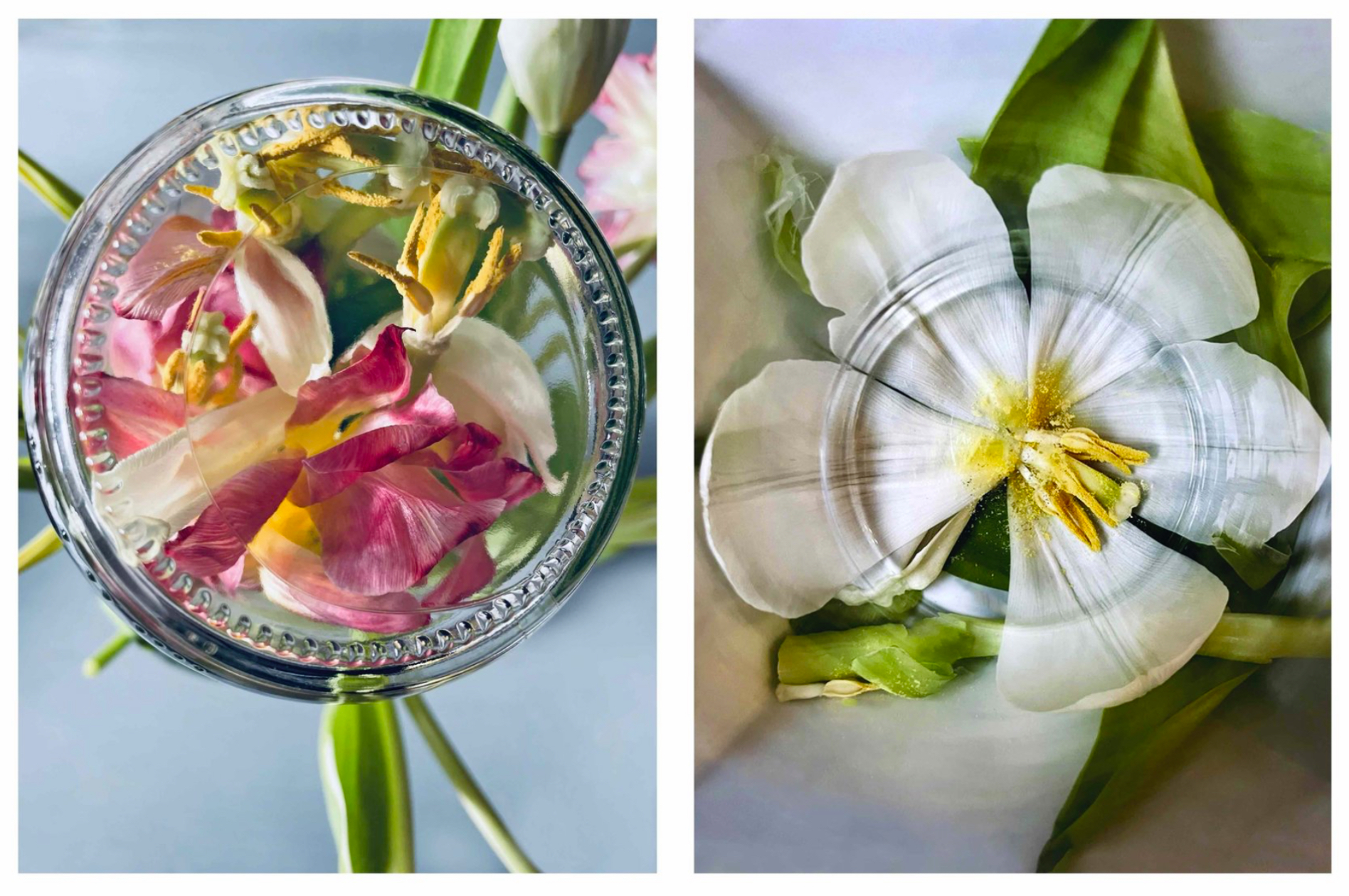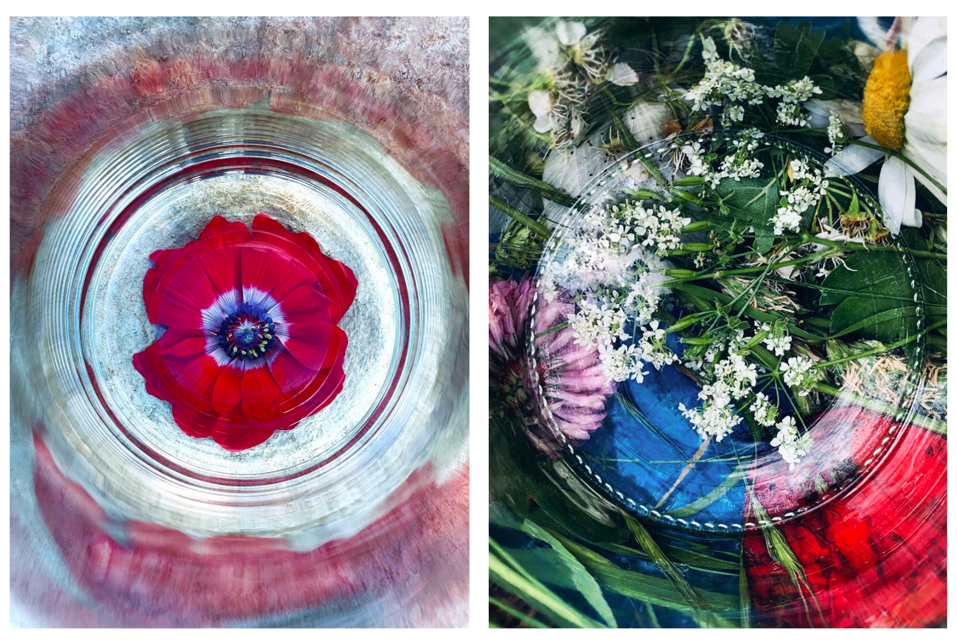 Cette série photographique est née après plusieurs semaines de confinement. Enfermée dans la propriété familiale près de Paris, entourée de nature, Nathalie Perakis-Vallat commence à observer. Le bourgeon qui éclot. Le pissenlit dont les fleurs deviennent des aigrettes blanchâtres.La découverte de bocaux en verre dans la cave de la maison nourrit sa curiosité. Elle se lance alors dans des expérimentations sans fin, écrase les fleurs de son jardin sous ces bocaux, rappelant les herbiers de son enfance.