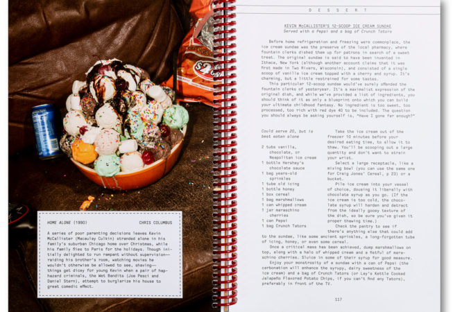 Décrit comme une « collection de recettes de fin de soirée et de plats ingénieux du fond du garde-manger », ce livre de cuisine chaotique présente des recettes issues de films