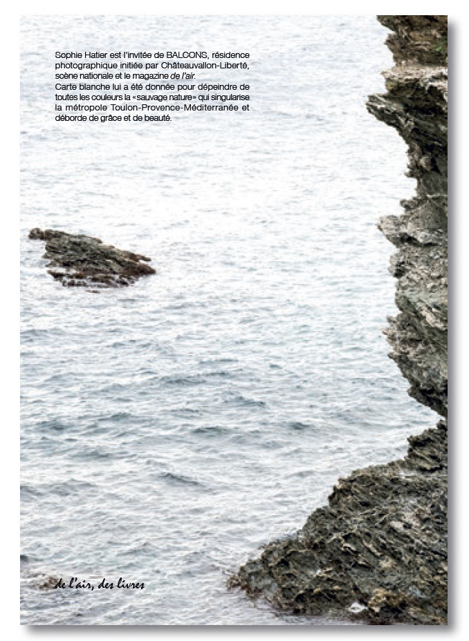 Sauvage est le fruit d’une résidence photographique initiée par Charles Berling et Châteauvallon-Liberté Scène nationale en collaboration avec le magazine de l’air. Sophie Hatier nature sauvage photographie répond, en effet, à l’appel de la « sauvage nature » fin 2025 et début 2026. Chaque année depuis 2022, un photographe est invité à porter son regard sur la métropole Toulon Provence Méditerranée.