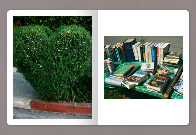 Tournant son objectif vers son propre quartier, perché entre les étendues de Los Angeles et de la vallée de San Fernando, Emily Shur adopte la figure de la photographe ambulante et concentre son regard sur ce lieu familier dans lequel elle cadre avec précision les surfaces, les couleurs et la lumière, fai-sant preuve d’un véritable plaisir de composition, où les formes se répondent avec un humour discret. Sunshine Terraceest le portrait d’un lieu vu à travers un regard légèrement incliné, légèrement détourné, se délectant des détails et des bizarreries rencontrés au cours d’une navigation faisant la part belle à la sérendipité.