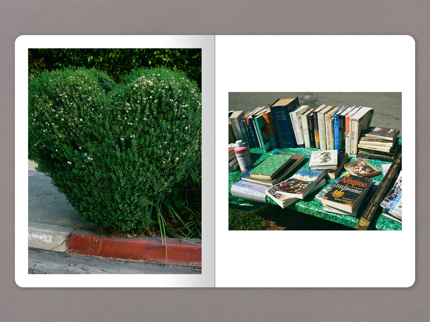 Tournant son objectif vers son propre quartier, perché entre les étendues de Los Angeles et de la vallée de San Fernando, Emily Shur adopte la figure de la photographe ambulante et concentre son regard sur ce lieu familier dans lequel elle cadre avec précision les surfaces, les couleurs et la lumière, fai-sant preuve d’un véritable plaisir de composition, où les formes se répondent avec un humour discret. Sunshine Terraceest le portrait d’un lieu vu à travers un regard légèrement incliné, légèrement détourné, se délectant des détails et des bizarreries rencontrés au cours d’une navigation faisant la part belle à la sérendipité.