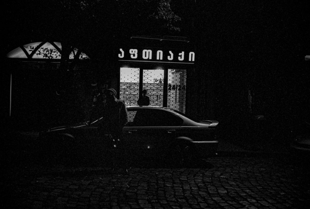 La Nuit à Tbilissi, l’Est est gommé, effacé. Ne reste de l’Est que quelques reflets lumineux sur d’antiques Lada, garées, encastrées dans les venelles. L’Est dans la manière de jeter un verre de Tchatcha, par-dessus son épaule, sec. L’Est dans la manière de dire à un touriste aviné qui chante l’Internationale : « Tes plus beaux rêves sont nos pires cauchemars ». Sa jeunesse se fédère autour des musiques électroniques, du rock indé et des arts plastiques pour mener des combats contre la société patriarcale. La piste, la scène et les expositions éphémères sont autant de lieux de fête et de revendication.