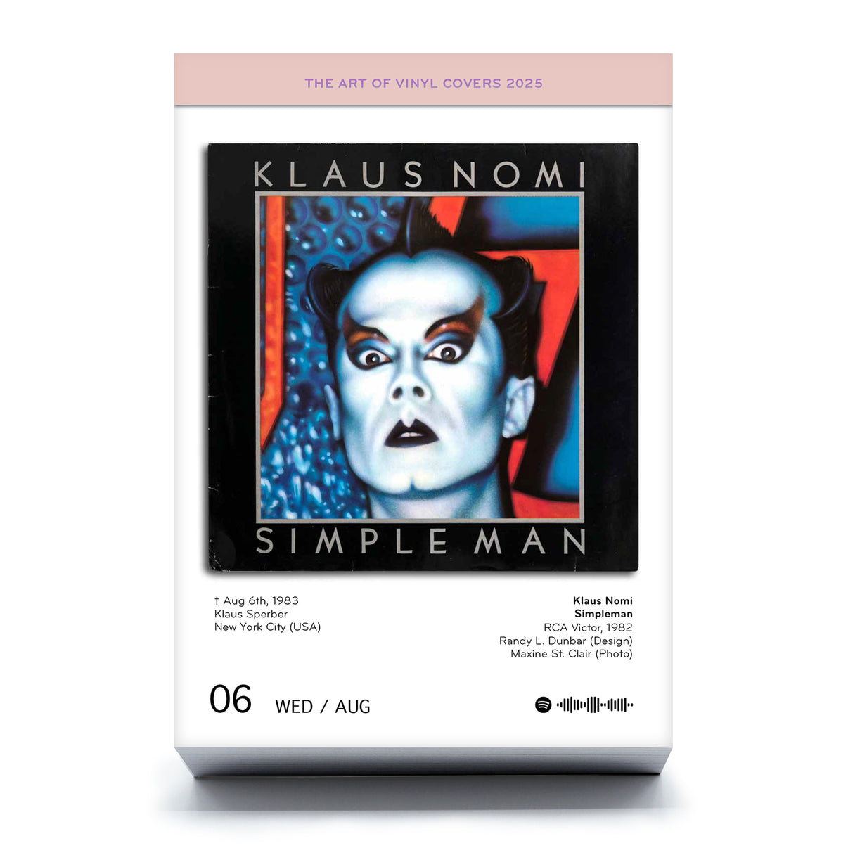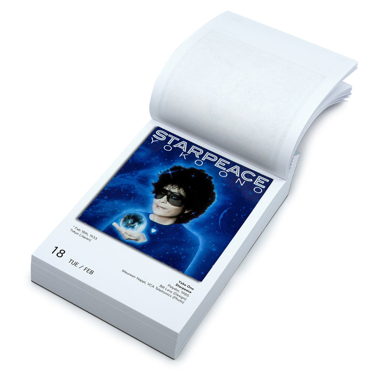 Le premier calendrier détachable au monde comprenant 365 pochettes de vinyles de musiciens connus et inconnus de tous les genres est publié pour la huitième fois. On y trouve de vrais classiques, mais aussi des œuvres inconnues et bizarres. En plus de l’inspiration musicale quotidienne et de la fête graphique pour les yeux, les noms des photographes, illustrateurs et directeurs artistiques des pochettes se trouvent également sur chaque page.