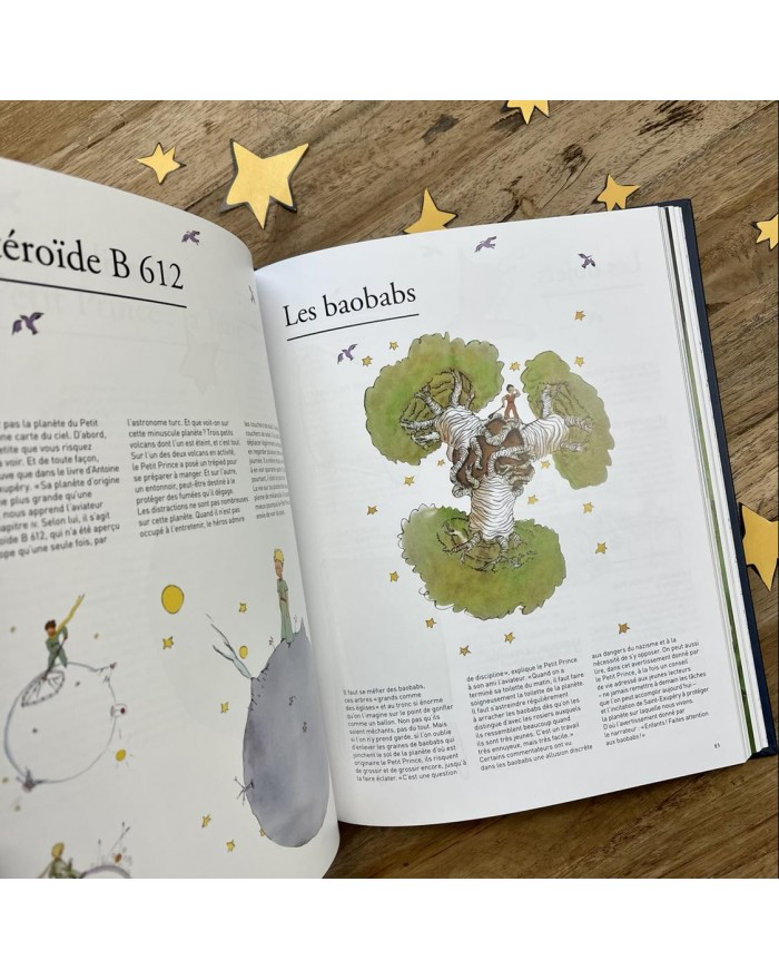 Réalisé en collaboration avec les plus grands connaisseurs de l’histoire, ce dictionnaire visuel présente tous les aspects du Petit Prince : les coulisses de l’écriture du conte et de sa publication, les secrets d’un chapitre inédit, des illustrations rares de l’auteur, des photographies du manuscrit original, un guide de tous les personnages principaux, des décors et des objets, etc ? Cet album officiel inclut également, pour la première fois, les nombreux hommages rendus à cette admirable histoire : films et dessins animés, comédies musicales, romans graphiques et produits dérivés. Ce volume exceptionnel célèbre comme il se doit l’un des plus grands héros du patrimoine culturel mondial : le Petit Prince.