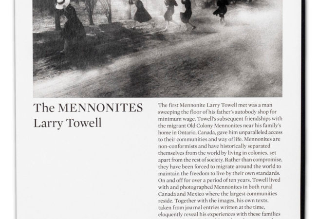 Larry Towell a photographié les mennonites de l’ancienne colonie dans les régions rurales de l’Ontario et du Mexique entre 1990 et 1999. Les photographies en noir et blanc qui en ont résulté, accompagnées d’un texte détaillé tiré de notes de journal et de «la boue de la mémoire», ont formé le livre phare de Towell, The Mennonites, publié pour la première fois en 2000. Cette deuxième édition révisée et mise à jour revisite le projet et comprend 40 photographies inédites.