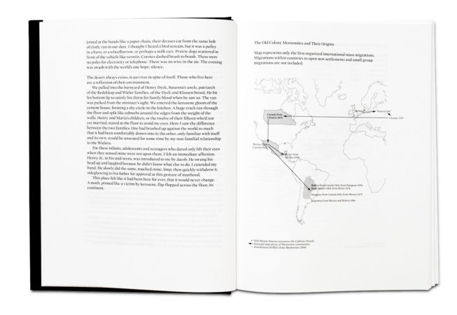 Les mennonites, originaires de la Hollande du XVI ème siècle, sont des non-conformistes et se sont traditionnellement séparés du monde en vivant dans des colonies à l’écart de la société en général. Ce projet se concentre sur la secte Old Colony, la secte la plus conservatrice et la plus insulaire, engagée dans une bataille permanente contre le modernisme qui cherche à les changer et à les absorber. Plutôt que de compromettre leur mode de vie, les mennonites ont été continuellement forcés de migrer à travers le monde pour conserver leur liberté de vivre comme ils l’entendent.
