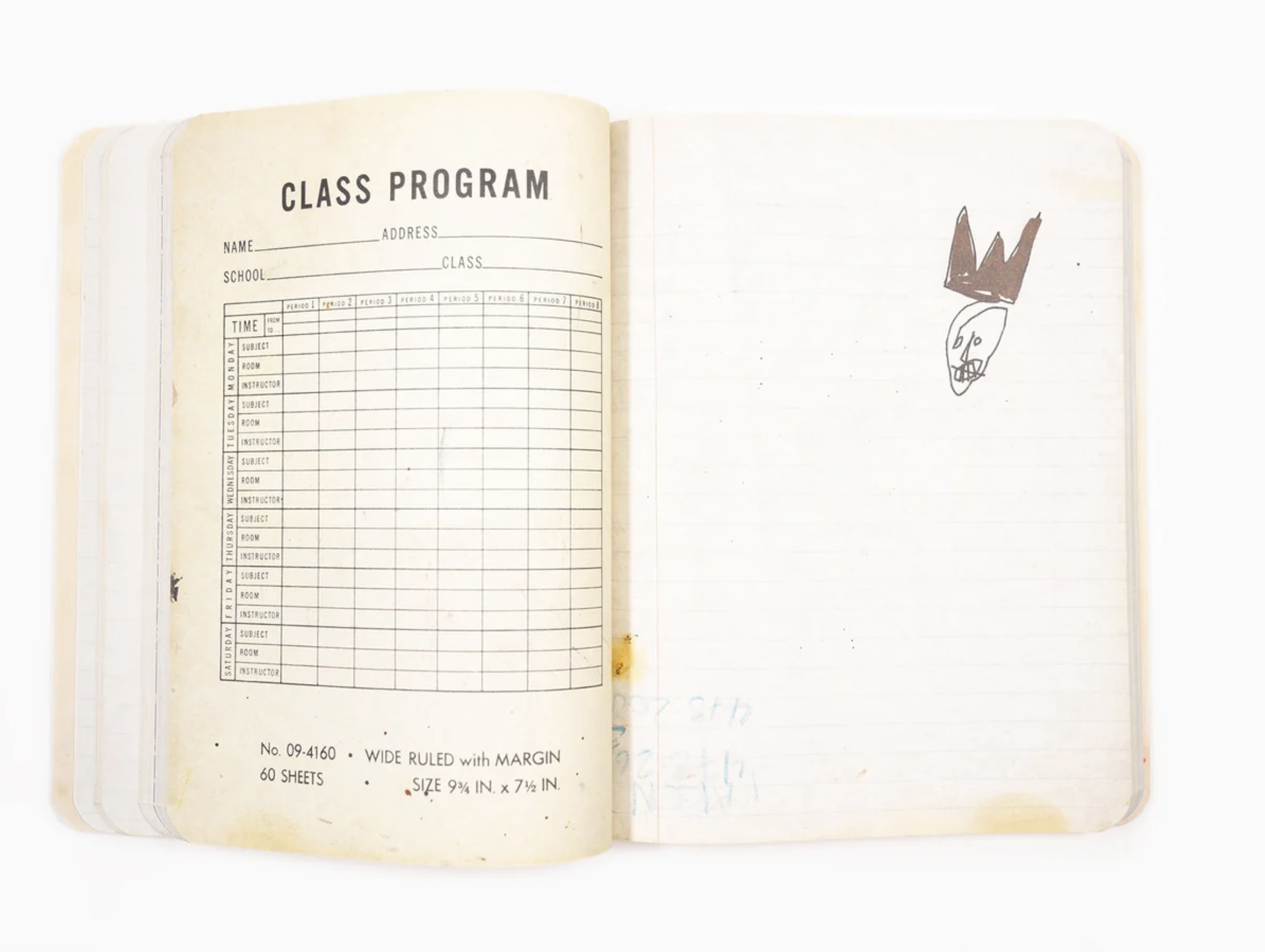 Cette édition en fac-similé reproduit pour la première fois les pages de huit de ces carnets fascinants et rarement vus. Les carnets sont remplis d’images et de mots qui reviennent dans les peintures et autres œuvres de Basquiat. Des dessins iconiques et des pictogrammes de couronnes, de tipis et de cœurs marqués d’une hachure partagent l’espace avec des textes manuscrits, y compris des notes, des observations et des poèmes qui traitent souvent de la culture, de la race, de la classe sociale et de la vie à New York.