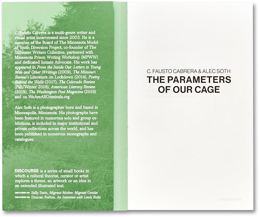 En décembre 2023, un comité dirigé par le gouverneur du Minnesota a voté à l’unanimité en faveur de la commutation de la peine de Cabrera. Cette édition complétée de The Parameters of Our Cagecomprend une nouvelle conversation entre Cabrera et Soth, enregistrée lors de leur première rencontre en personne, qui aborde la question de la vie après l’incarcération. qui aborde la question de la vie après l’incarcération.