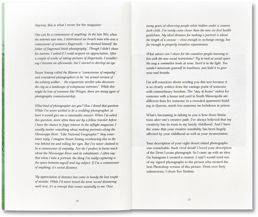 En janvier 2020, Alec Soth a reçu une lettre de Chris Fausto Cabrera, un détenu du Minnesota Correctional Facility à Rush City, demandant au photographe d’entamer un dialogue. Cette lettre a déclenché une correspondance étendue et perspicace au cours des neuf mois suivants, avec pour toile de fond la pandémie de Covid-19, le mouvement Black Lives Matter et l’agitation croissante qui touche le cœur de l’Amérique contemporaine.