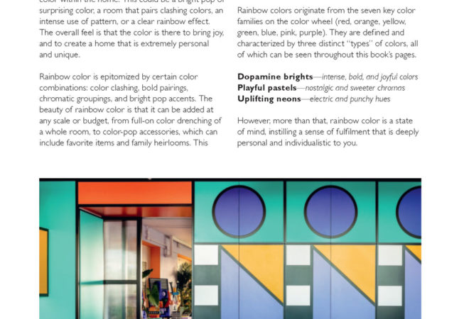 The Rainbow Home est le livre de référence qui vous permet de définir facilement votre propre style arc-en-ciel et d’ajouter de la couleur partout dans votre maison. The Rainbow Home est un excellent livre de décoration d’intérieur, à acheter soi-même pour les passionnés de couleurs, à offrir en cadeau lors d’une pendaison de crémaillère ou à utiliser comme guide pratique pour les designers, les stylistes et les décorateurs.