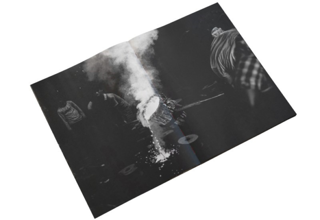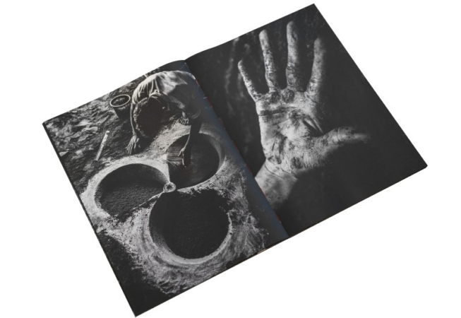 Là, adultes et enfants travaillaient ensemble pour créer un métal froid et dur en versant un liquide rouge en fusion, comme du magma, dans le sol noir, qui était recouvert de sable de fer. On se croirait dans le monde des mythes de la création. L’immobilité et le mouvement, la douceur et la dureté, la lumière et l’ombre, la régénération et la destruction.