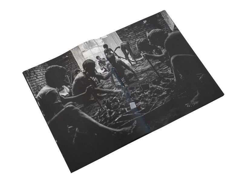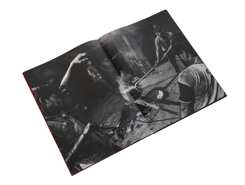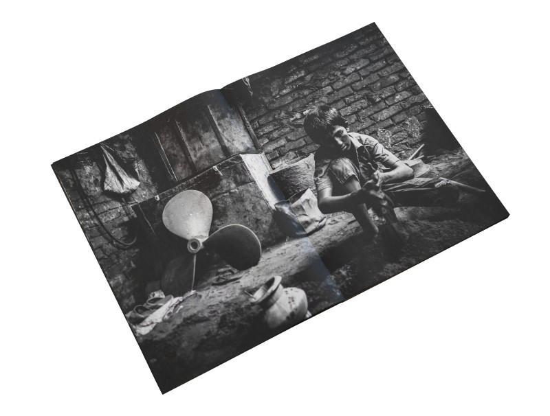 Des flammes brûlantes, une fumée noire qui monte, des perles de sueur qui coulent sur des visages couverts de suie, des voix d’hommes en colère qui résonnent dans l’air, et l’odeur du mazout. Depuis ma première visite au Bangladesh en 2012, j’ai visité et photographié à plu-sieurs reprises les personnes qui fabriquent les « vis » des navires. Ils travaillaient dans un petit atelier sombre, semblable à une grotte.