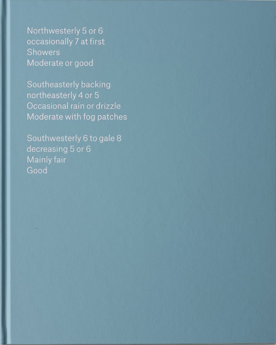 «Les prévisions maritimes existent, bien sûr, pour sauver des vies. Elles avertissent les personnes en mer, ou sur le point de prendre la mer, de l’approche d’une tempête. Mais pour la majorité d’entre nous, en Grande-Bretagne du moins, son langage étrange et rythmé est ouvertement romantique et étrangement rassurant, même s’il renvoie l’image d’une nation insulaire perpétuellement secouée par le vent et les vagues». – Mark Power