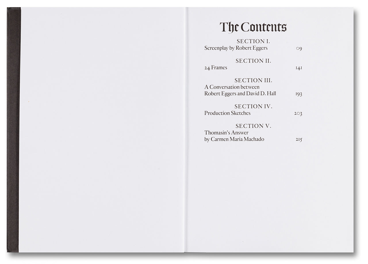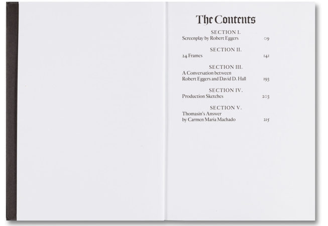 Le scénario méticuleusement documenté de Robert Eggers pour The Witch est présenté avec une courte fiction de Carmen Maria Machado, une conversation entre Eggers et l’érudit David D. Hall, ainsi que les croquis de production du film réalisés par Eggers lui-même.