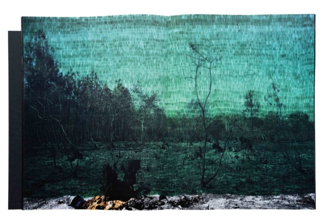 Voir les paysages statiques, silencieux, vides, constater l’absence écrasante de vie et se confronter à ce qui subsiste après le passage des méga-feux de forêts.Il ne s’agit pas de la perte matérielle, mais de l’appréhension intime de la charge émotionnelle. La complexité de la perception humaine est ici questionnée, par un mécanisme d’ajustement qui nous permet d’apprivoiser le brutal, le destructif. La façon dont nous mettons en place un procédé pour rendre supportable le Thanatos. Et notre force à aller chercher la beauté dans l’obscurité absolue.