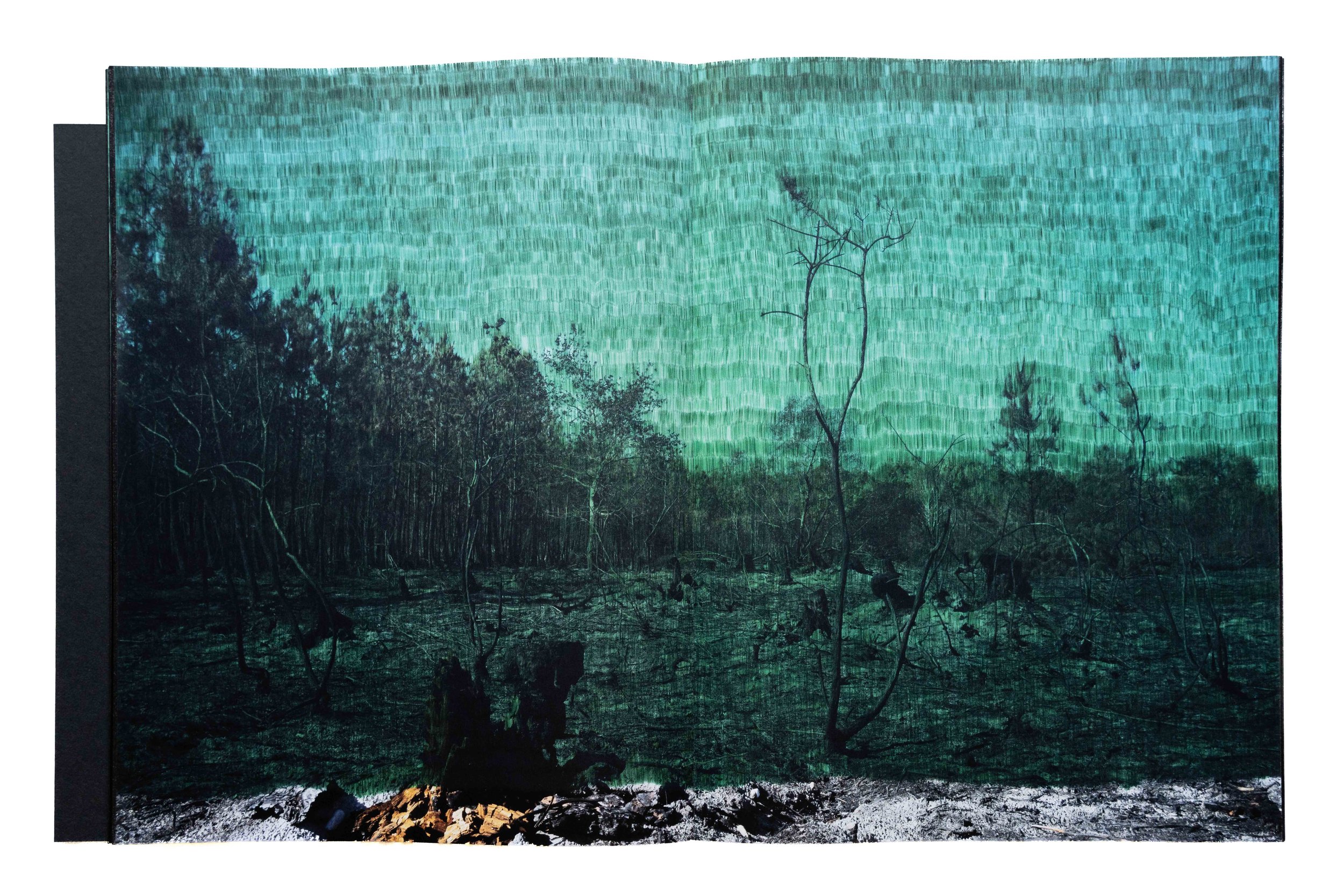 Voir les paysages statiques, silencieux, vides, constater l’absence écrasante de vie et se confronter à ce qui subsiste après le passage des méga-feux de forêts.Il ne s’agit pas de la perte matérielle, mais de l’appréhension intime de la charge émotionnelle. La complexité de la perception humaine est ici questionnée, par un mécanisme d’ajustement qui nous permet d’apprivoiser le brutal, le destructif. La façon dont nous mettons en place un procédé pour rendre supportable le Thanatos. Et notre force à aller chercher la beauté dans l’obscurité absolue.