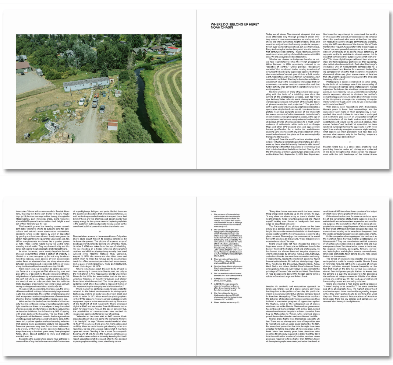 Topographies : Aerial Surveys of the American Landscape présente la dernière œuvre de Stephen Shore : une série de photographies prises avec un drone à partir de 2020, qui révèlent dans des détails saisissants l’interaction des paysages naturels et artificiels du Montana, de la Caroline du Nord, de New York et d’ailleurs.