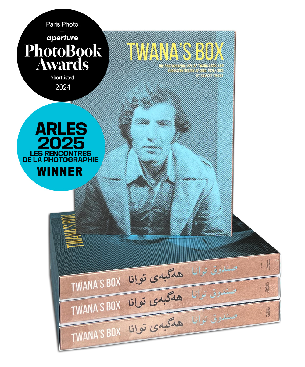 Twana’s Box n ‘est pas seulement le livre de photos qui contient une sélection des archives de Twana Abdullah ; c’est aussi un aperçu unique d’une époque et d’un lieu dans une région qui s’est complètement transformée depuis. Rawsht a passé des années à reconstituer les négatifs et les histoires de son père. Son travail d’archivage l’a incité à devenir lui-même photographe, en travaillant pour Metrography, la première agence photo irakienne indépendante, avant d’immigrer en Europe.