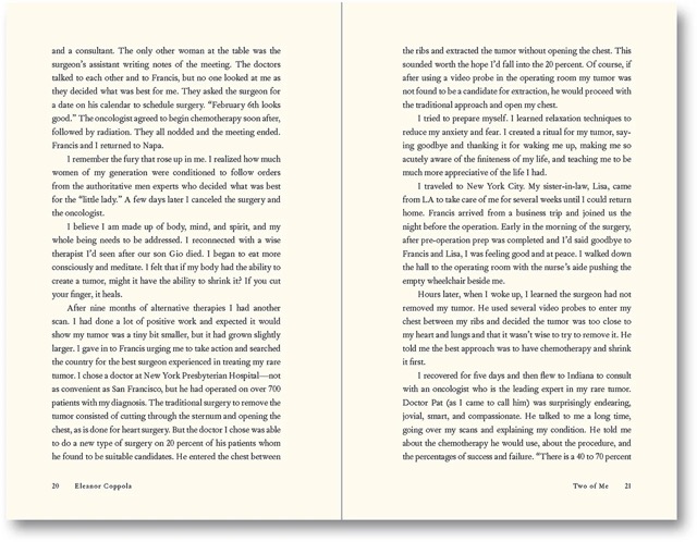 Ce mémoire posthume décrit sa difficulté à concilier création et vie familiale. Eleanor Coppola évoque aussi ses œuvres majeures, dont Notes: On the Making of Apocalypse Now et le documentaire Hearts of Darkness. Elle partage les dernières années de sa vie, faites de doutes, de créativité retrouvée et d’une résilience profonde.