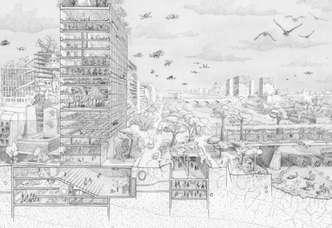 Tour à tour manifeste, refuge, relique ou promesse, la Tour Traversière devient le centre nerveux d’une polyphonie urbaine. Dans ce dispositif, les destins individuels se frottent aux secousses du monde. Les récits s’entrelacent et déplacent le regard, sans jamais imposer une lecture unique.
