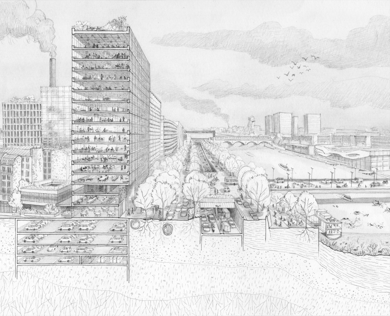 Tour à tour manifeste, refuge, relique ou promesse, la Tour Traversière devient le centre nerveux d’une polyphonie urbaine. Dans ce dispositif, les destins individuels se frottent aux secousses du monde. Les récits s’entrelacent et déplacent le regard, sans jamais imposer une lecture unique.