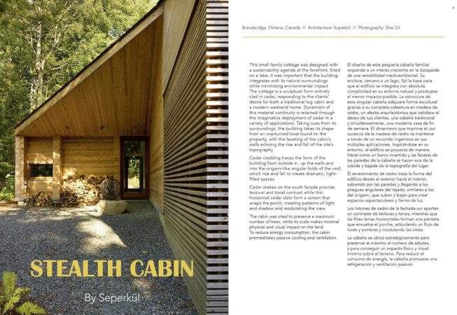 Dans un monde de plus en plus saturé et connecté, ce livre souligne le besoin de se déconnecter et de revenir à l’essentiel : la nature. Des cabanes nichées dans les forêts aux maisons perchées sur les rochers en passant par les structures défiant les vents sur les falaises, chaque projet reflète un équi-libre entre le design, la durabilité et le respect de l’environnement. Nombre de ces maisons sont hors réseau, utilisant des technologies telles que les panneaux solaires et les systèmes de récupération d’eau de pluie, prouvant que l’autosuffisance peut être à la fois inspirante et fonctionnelle.